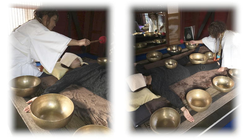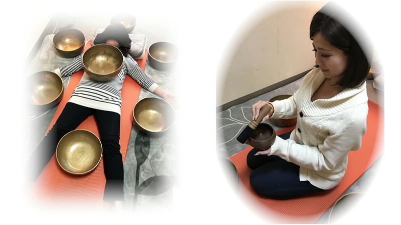 この水分に、ボウルの音や響きが共鳴して、細胞レベルで滞っている氣を流します。